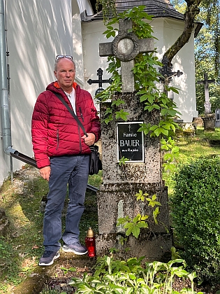 ![]() U hrobu předků na mouřeneckém hřbitově - babička Theresia (1905–1993) byla rozená Bauerová Repro z daru Christiana Aussprunga |