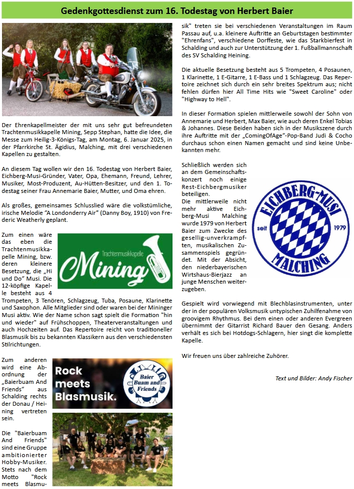 Článek v obecním zpravodaji k 16. výročí jeho úmrtí (a 1. jeho manželky) Repro Malchinger Gemeindeblatt, č. 57 (2024), s. 19 |