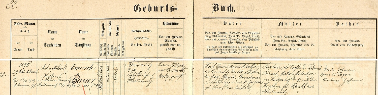 Záznam o svatbě rodičů (viz i Wilhelm Bauer) Repro SOA v Plzni - Porta fontium |