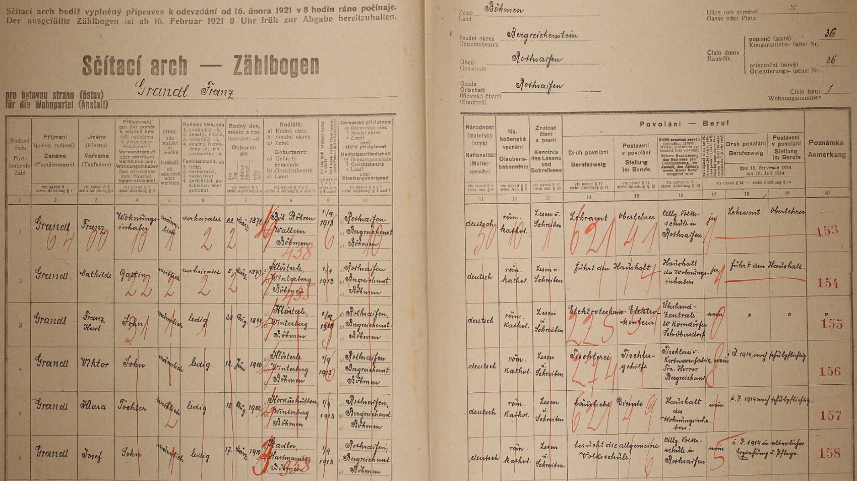 Arch sčítání lidu z roku 1921 pro školu v Červené Repro Sčítání lidu 1921, Červená, SOkA Klatovy (SOA v Plzni - Porta fontium) |