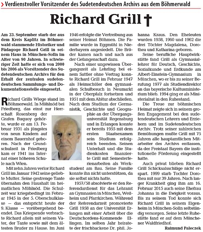 ![]() Nekrolog do krajanského listu napsal Raimund Paleczek Repro Sudetendeutsche Zeitung, 2021, č. 41, s. 6 |