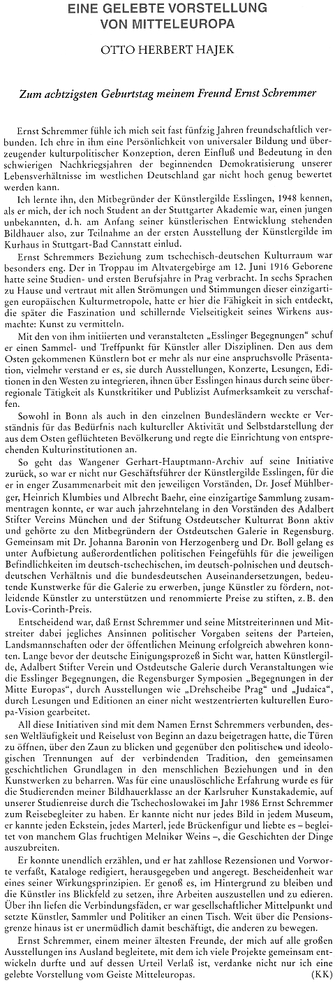 Jeho umělecká a životní výpověď na stránkách téhož listu Repro Sudetendeutsche Zeitung, 1994, č. 37, s. 5 |