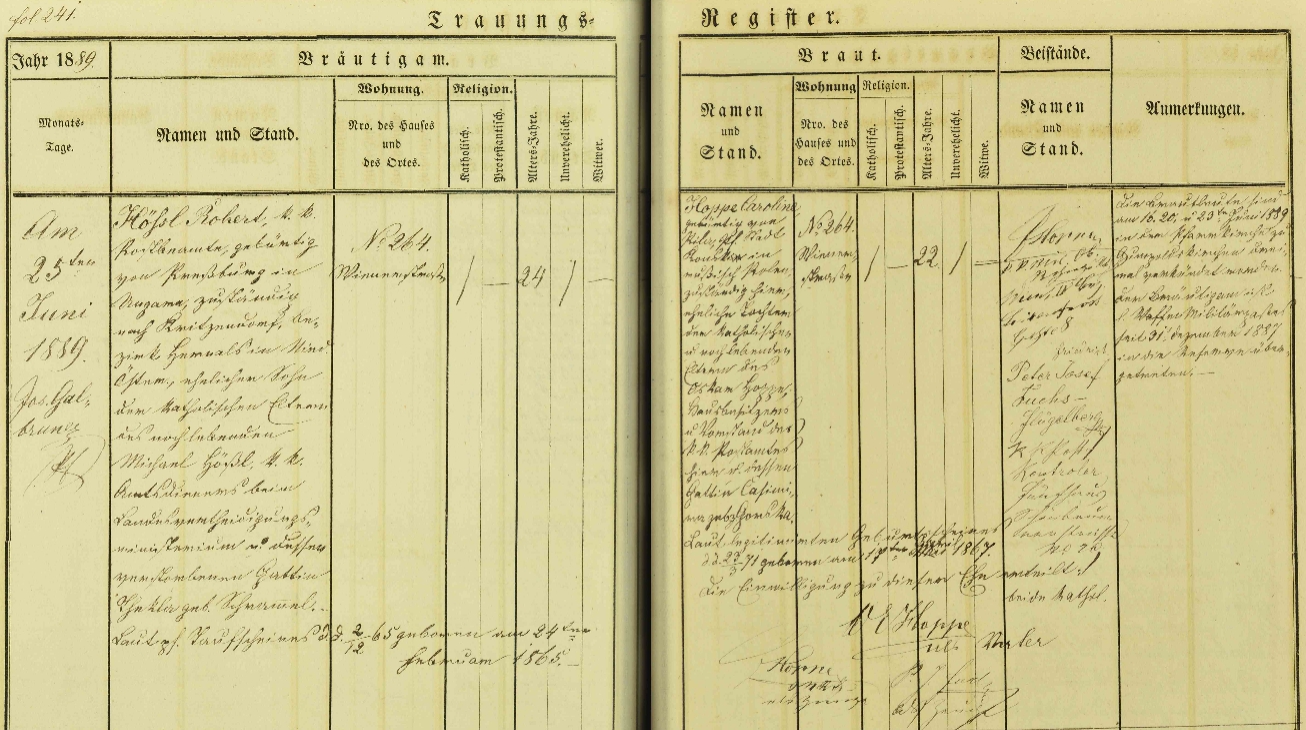 Záznam o sestřině svatbě v oddací matrice farnosti Gumpoldskirchen Repro Akta Stanu Cywilnego Parafii Rzymskokatolickiej św. Jana w Radomiu Szukaj w Archiwach |