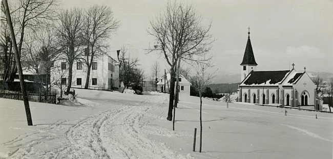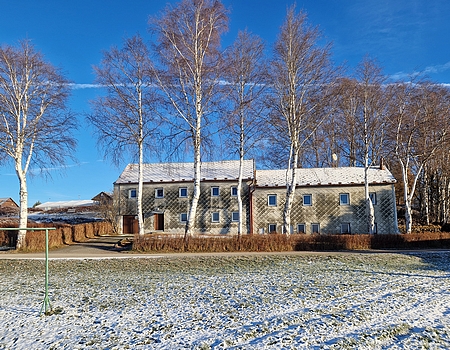 ![]() S celou vsí zanikla i škola ve Zvonkové Repro F. Petschl, Glöckelberg : Geschichte einer Böhmerwaldgemeinde (1992), s. 141, nekvalitní kopie upravena ChatGPT |