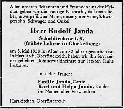 ![]() Učitelský sbor školy ve Zvonkové roku 1938, dle popisky z krajanského webu tu stojí čtvrtý zleva: "Ponert, Marx, Pascher, Janda, Pfr. Metzner, Engel, Frl. Herbinger, Fr. Pascher, Frl. Rienmüller u. Wimberger" Repro www stránky Glöckelberg.at |