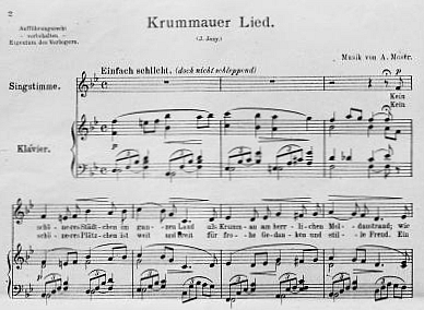 Notový záznam jeho Krummauer Lied s hudbou A. Mosera Repro R. Doyscher, Krummau: Sonne und Sturm im Jugendparadie (1996), s. 72 |