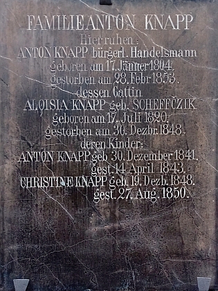 ![]() Náhrobek rodiny Knappovy na českobudějovickém Staroměstském hřbitově... Foto Pavel Polák |