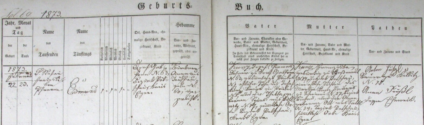 Záznam o jeho narození v křestní matrice obce Javorná Repro SOA v Plzni - Porta fontium |