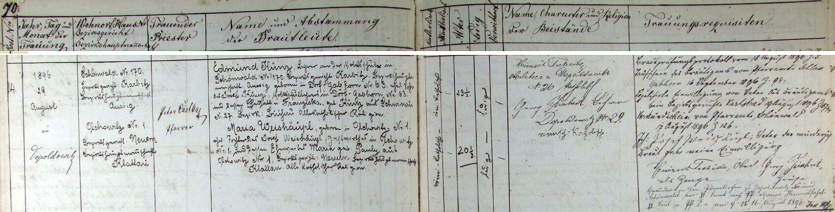 Záznam o svatbě v děpoltické oddací matrice Repro SOA v Plzni - Porta fontium |