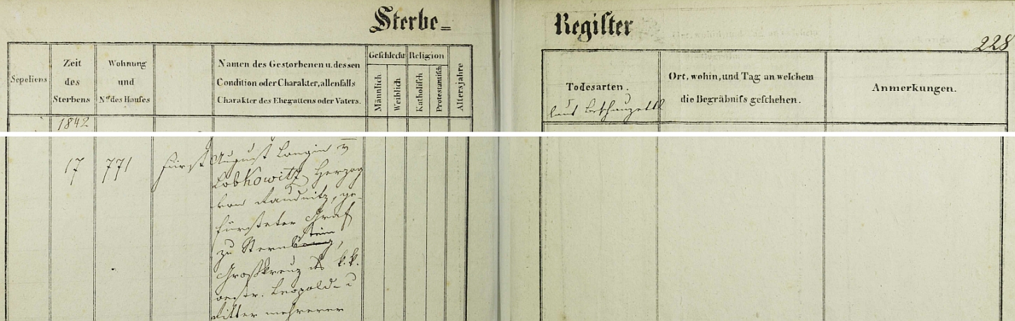 Záznamy o jeho skonu v úmrtních matrikách vídeňského dómu sv. Štěpána... Repro Matricula Online |