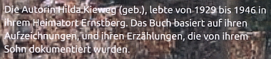 P.S. Pod jejím rodným jménem Hilda Kieweg a knižním titulem "Böhmerwaldheimat: Kindheit und Jugend bis zur Aussiedlung" (na obálce "Böhmerwaldheimat: Kindheitserinnerungen") vydal po její smrti převyprávění jejích vzpomínek na dětství a mládí až do vysídlení jeden z jejích čtyř synů a jmenovec svého otce Thomas Stadler