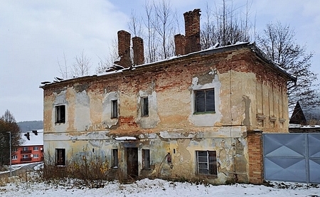 Někdejší škola v Korkusově Huti kdysi a v roce 2022 (opuštěná a chátrající byla už před požárem roku 2016) Repro www stránky Historie školních budov |
