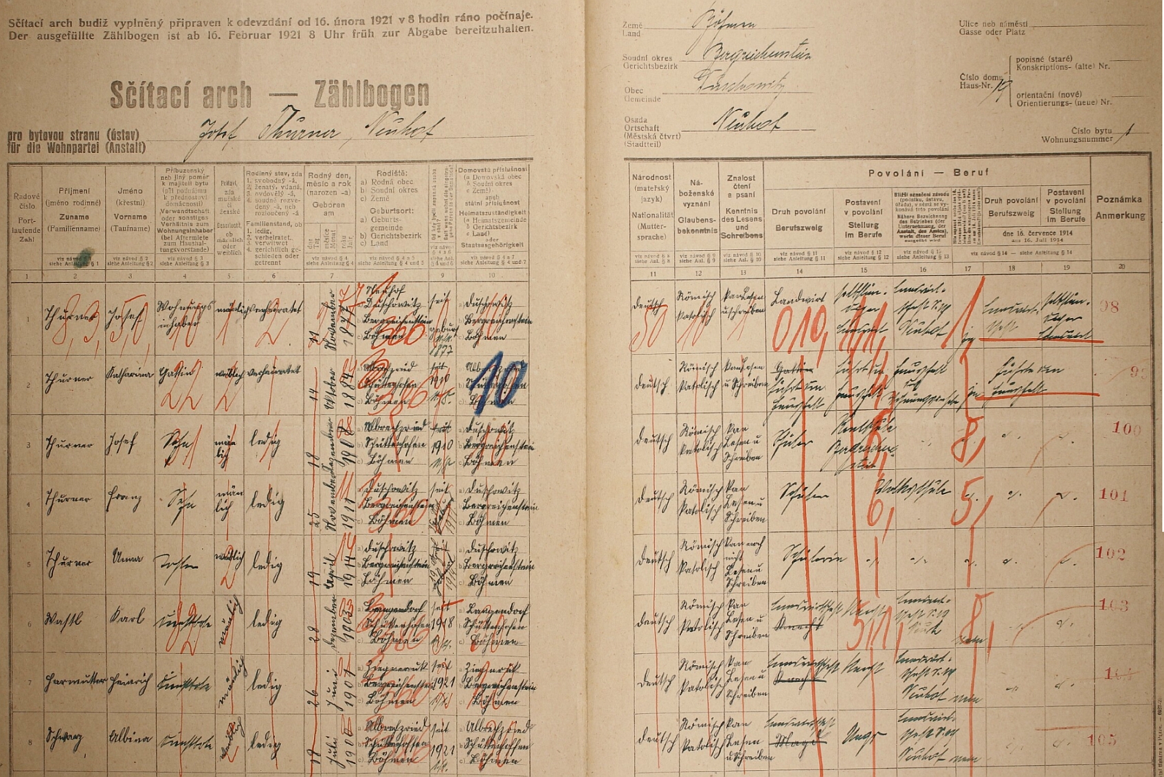 ... a čp. 19 v Novém Dvoře Repro Sčítání lidu 1921, Tuškov - Žlíbek, SOkA Klatovy (SOA v Plzni - Porta fontium) |