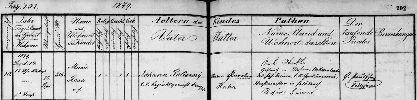 Záznam o jeho narození v hornovltavické matrice Repro SOA v Třeboni - digitální archív |