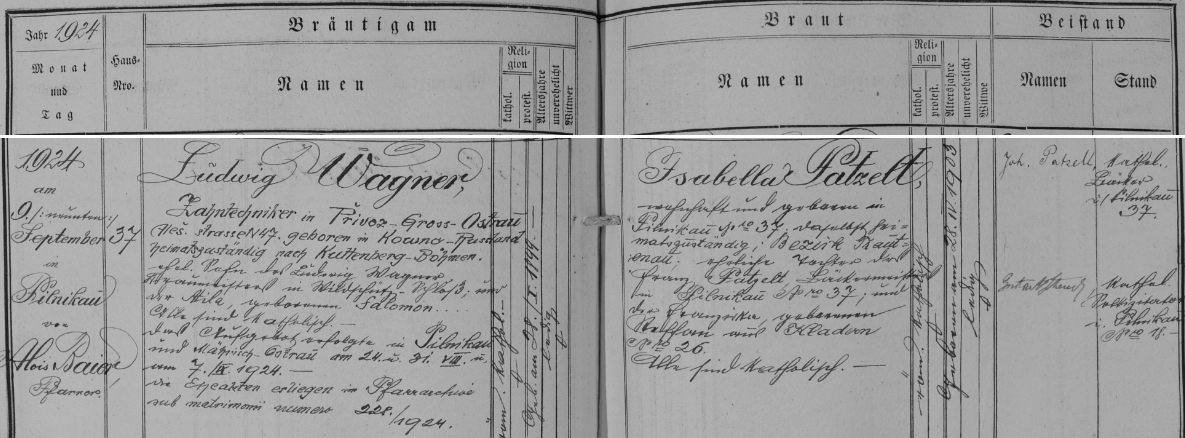 Záznam o svatbě v Pilníkově v trutnovské oddací matrice potvrzuje datum narození 28. ledna Repro SOA Zámrsk - Matriky online |