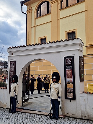 ![]() Českokrumlovská granátnická garda při návštěvě prezidenta Petra Pavla 19. července 2023... Repro www stránky Deník.cz, foto Petr Škotko |