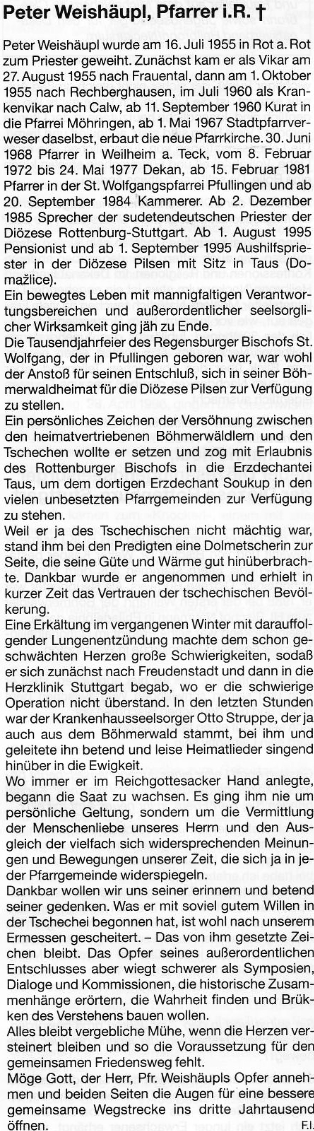 Nekrolog Repro Glaube und Heimat, 1996, č. 7, s. 8 |