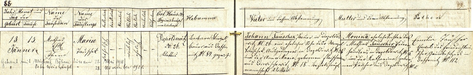 Záznam o narození otcově s přípisem o svatbě... Repro SOA v Plzni - Porta fontium |