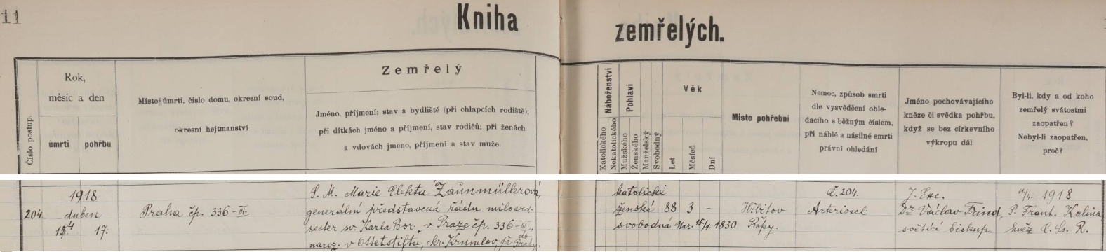 Záznam o jejím skonu v úmrtní matrice farnosti sv. Mikuláše na prařské Malé Straně Repro Archiv hlavního města Prahy, Archivní katalog, Sbírka matrik MIKZ25 |