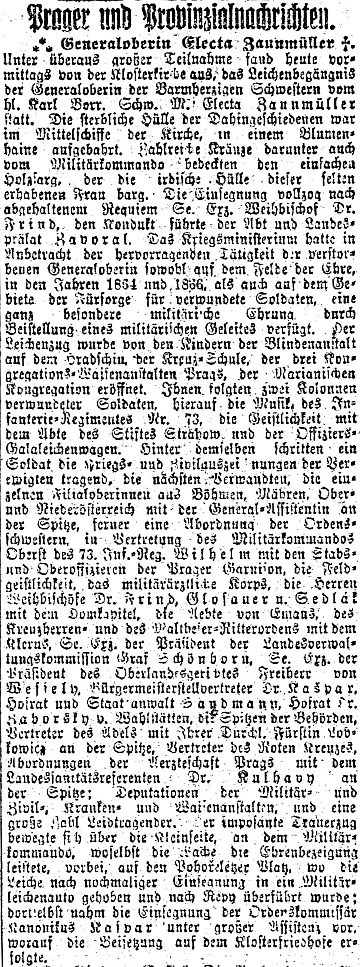 ![]() Článek v českých katolických novinách k sedesátému výročí složení řádových slibů Repro Čech : politický týdenník katolický, 1911, č. 64, s. 3 |