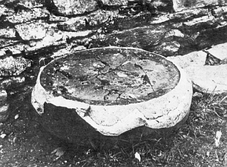![]() Dno sklářské pánve se sklovinou, nález na Páteříkové Huti Repro V. Kudrlička - J. Záloha, Umění šumavských sklářů (1987), s. 168 |
