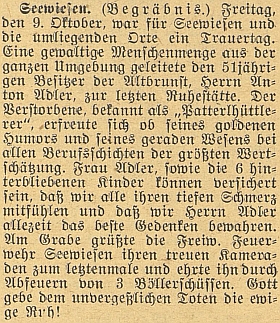 ![]() ... a o jeho úmrtí v českobudějovických německých novinách Repro Budweiser Zeitung, 1936, č. 82, s. 8 |