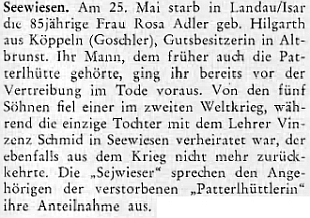![]() Zpráva o manželčině úmrtí v krajanském časopisu Repro Hoam!, 1971, č. 7, s. 213 |