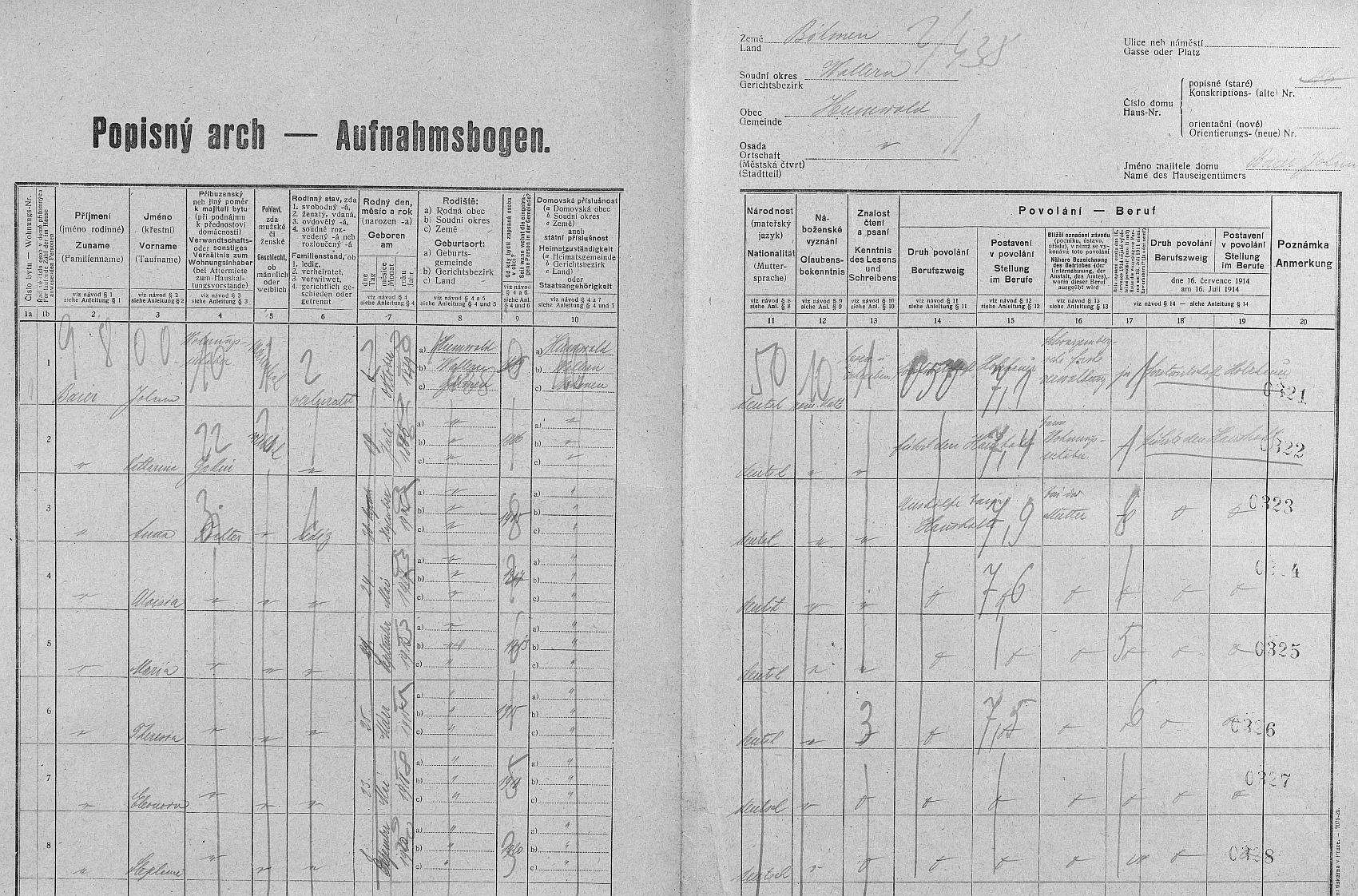 Arch sčítání lidu z roku 1921 pro dům čp. 46 v Chlumu s babičkou Stephanií Repro Sčítání lidu 1921, Želnava, SOkA Český Krumlov (SOA v Třeboni - digitální archív) |