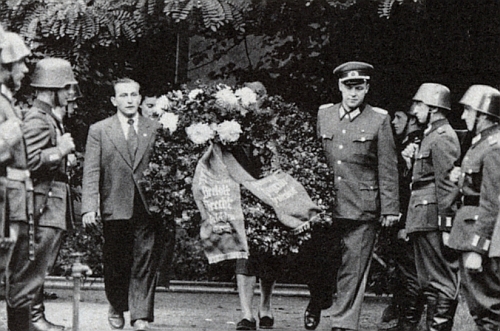 ![]() Trochu bizarní stafáž z jeho berlínského pohřbu v srpnu roku 1956 Repro Chronik des 20. Jahrhunderts (1991), s. 825 |