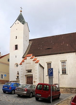 Fara čp. 46 a kostel Navštívení Panny Marie ve Vimperku Repro www stránky Vimperk - turistický portál a foto Leona Töröková |