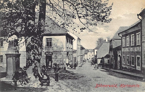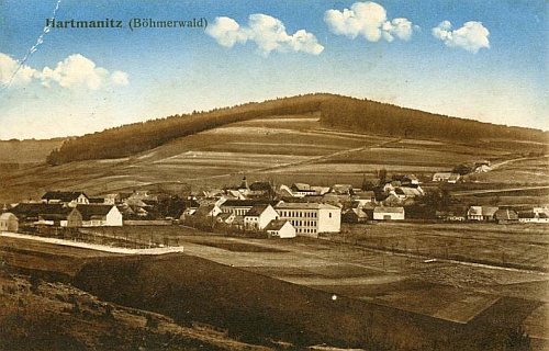 ![]() Hartmanice na zvláštně kolorovaném snímku z přelou 19. a 20. století Repro Böhmerwaldbund OÖ - Historische Datenbank (ze sbírky Dr. Otto Spitzenbergera, Puchenau) |