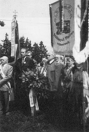 ![]() První pouť k "Bucherser Kapelle" ve Stadlbergu roku 1987 v čele s ním Repro Glaube und Heimat, 1995, č. 6, s. 57 |