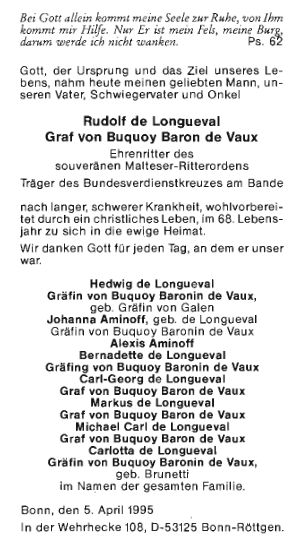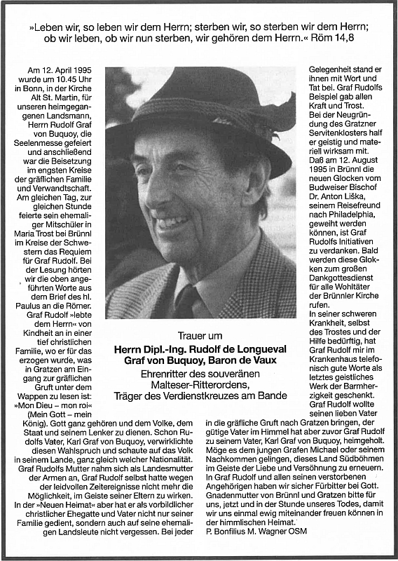 Nekrolog do krajanského časopisu napsal Bonfilius Wagner Repro Glaube und Heimat, 1995, č. 5, s. 11 |
