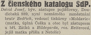 ![]() O jeho bratru Josefovi a o něm i jeho ženě Hildegard na stránkách listu Českobudějovické noviny z léta osudového roku 1938 Repro Českobudějovické noviny, 1938, č. 29, s. 1 |