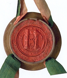 ![]() Stará pečeť města Nová Bystřice na otisku z roku 1658 Repro V. Rameš - V. Kolda, Poklady minulosti - Jihočeské archivy : littera scripta manet (2011), s. 75 |