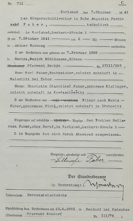 Záznam o jeho skonu v karlovarské stavovské matrice Repro SOA v Plzni - Porta fontium |