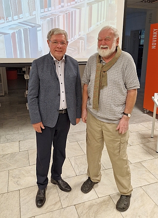 Se Zdenou Mrázkovou a Janem Marešem při jeho přednášce v Jihočeské vědecké knihovně roku 2024
