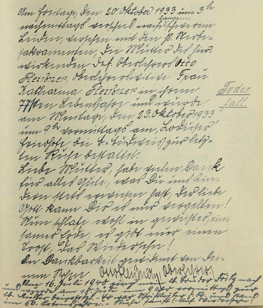 ![]() Jeho zápis o smrti matčině (a přípis o smrti bratrově) ve svatotomášské školní kronice Repro Kronika německé obecné školy Svatý Tomáš, SOkA Český Krumlov (SOA v Třeboni - digitální archív) |