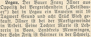 ![]() Zpráva o jejím otci a jeho selské usedlosti v Legau po válce se zmínkou o dceři učitelce a synu zahradníku ve Švýcarsku Repro Hoam!, 1954, č. 12, s. 14 |