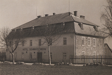 ![]() Někdejší hotel Schwarzenberg v Kunžvartu Repro M. Leiš, Konec staré Šumavy (2020), s. 157 |