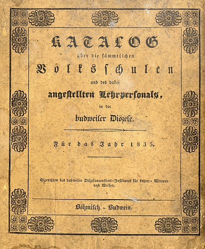 Údaje v katalogu škol budějovické diecéze uvádí kromě jeho data narození i data jeho nástupce a zetě, neodpovídá ale na logickou otázku, jestli bylo reálné, aby obdržel učitelský dekret skutečně roku 1776, tedy v pouhých patnácti letech Repro Katalog über die sämmlichen Volkschulen und des dabei angestellten Lehrpersonals in der budweiser Diözese für das Jahr 1835 |