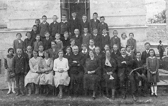 ![]() V roce 1914 je zachycen jako pětadvacetiletý katecheta na dívčí měšťanské škole ve Vimperku třetí zleva ve druhé řadě Repro Böhmerwäldler Heimatbrief, 1979, č. 1, s. 13 |
