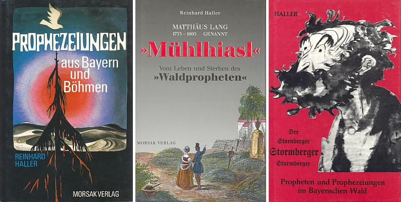 ![]() Obálky tří jeho knih o šumavských proroctvích, vesměs vyšlých v nakladatelství Morsak, Grafenau, |