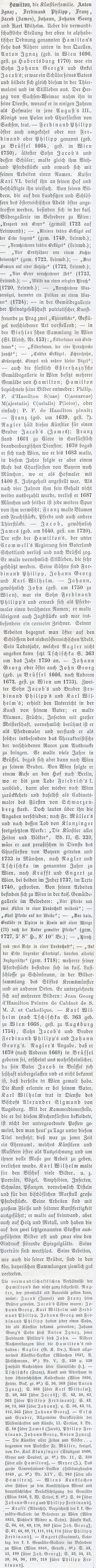 O uměleckém rodu Hamiltonových na stránkách Wurzbachova lexikonu rakouských osobností Repro C. von Wurzbach, Biographisches Lexikon des Kaiserthums Oesterreich enthaltend die Lebensskizzen der denkwürdigen Personen, welche seit 1750 in den österreichischen Kronländern geboren wurden oder darin gelebt und gewirkt haben. Siebenter Teil, Habsburg (Magdalena - Wilhelmine) - Hartlieb (1861), s. 263-265 |