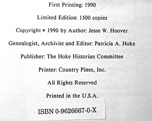Kniha o něm a jeho rodu, vydaná v USA roku 1990 (The Hoke Historian Commitee)