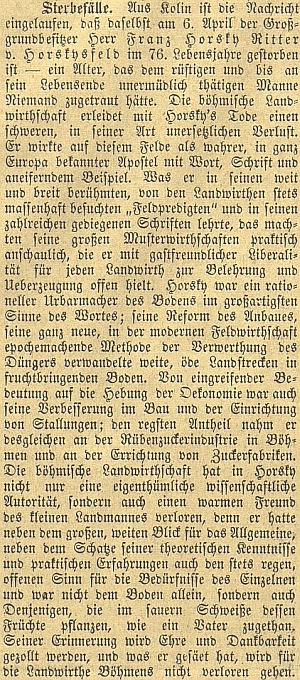 Zpráva o jeho úmrtí v českobudějovickém německém listu Repro Budweiser Zeitung, 11. 4. 1877, s. 2 |
