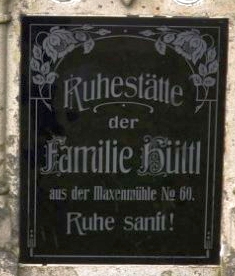 Hrob rodiny Hüttlovy z Maxova mlýna čp. 60 na hřbitově ve Svaté Kateřině... Repro www stránky Historické hřbitovy |