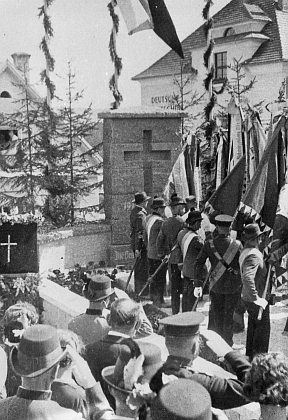 Odhalení památníku padlých ve světové válce v roce 1937 Repro Obecní kronika obce Větřní (reprofoto Jan Štindl) |