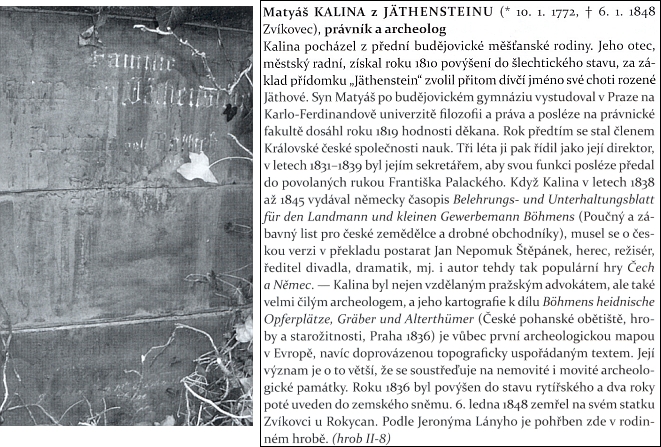 ![]() Hrob rodiny Kalinů z Jäthensteinu na Olšanských hřbitovech v Praze Repro M. Szabo, Pražské hřbitovy. Olšanské hřbitovy I. & II. (2010), s. 139, 149-150 |