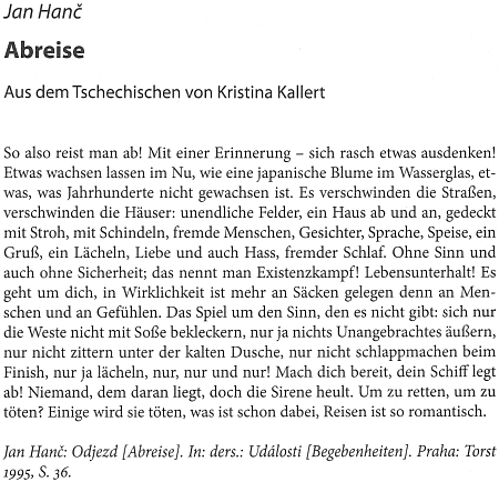 ![]() Její překlad krátké prózy Jana Hanče Repro Sudetenland, 2021, č. 3-4, s. 104 |